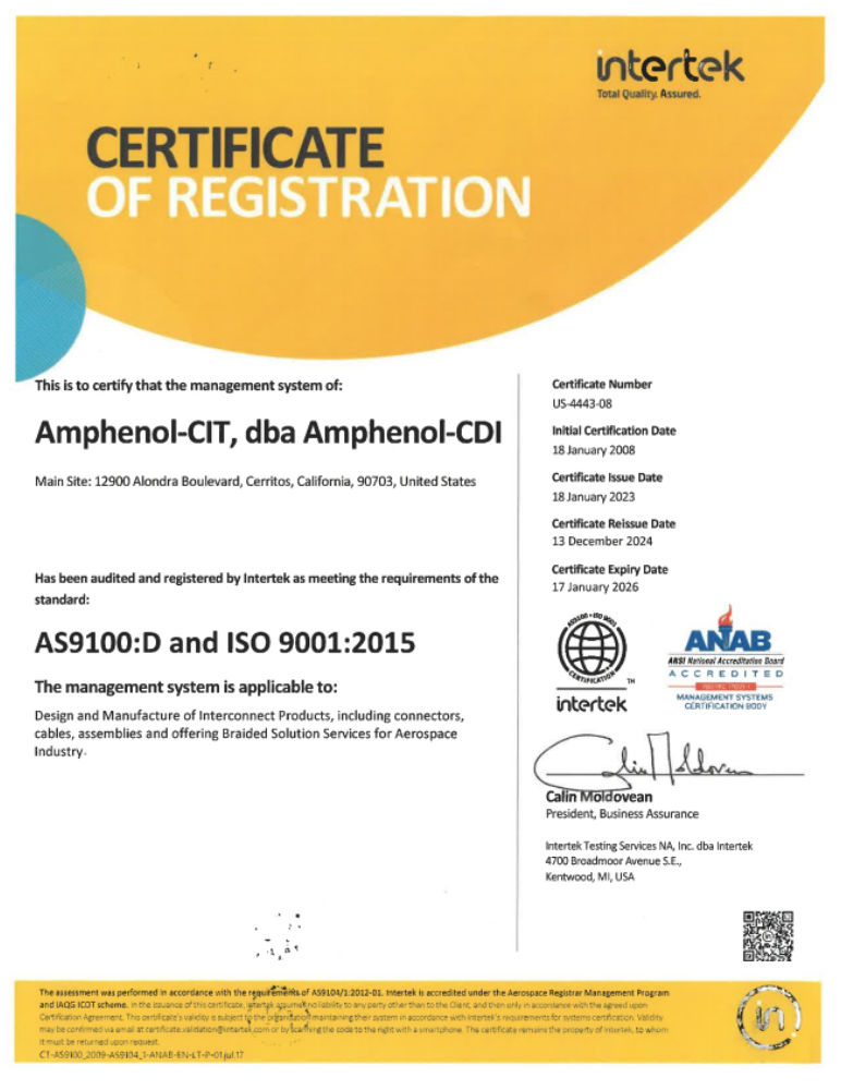 Today, as part of Amphenol Corporation, AmphenolCDI builds on its rich heritage of quality and innovation. Our products are engineered to support mission-critical applications in industries such as Defense, Space, Aerospace, Test & Measurement, Quantum/Cryogenic, Medical and Industrial markets.