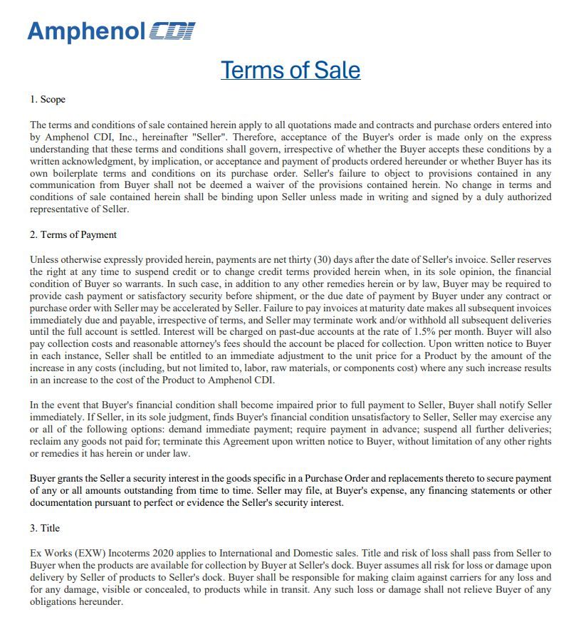 Terms of Sale